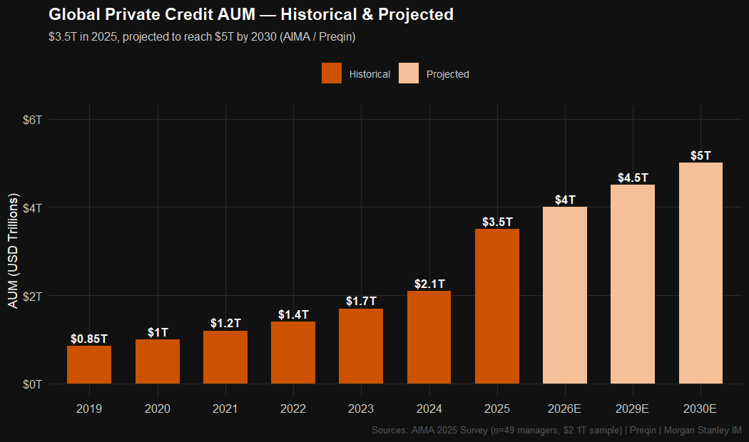 Global Private Credit AUM — Historical & Projected